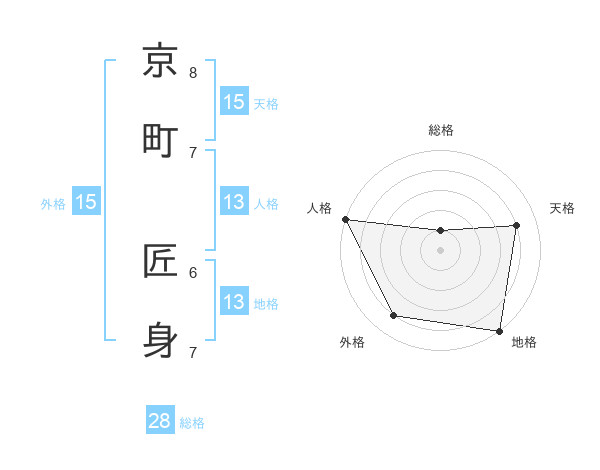 京町 匠身さんの総格は28画の1点!