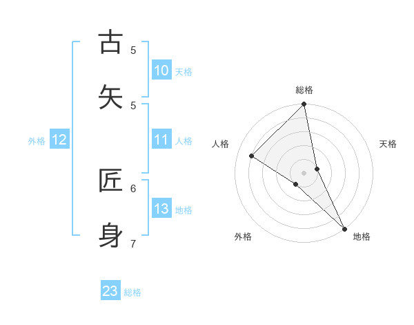 古矢 匠身さんを姓名の画数から五運を鑑定