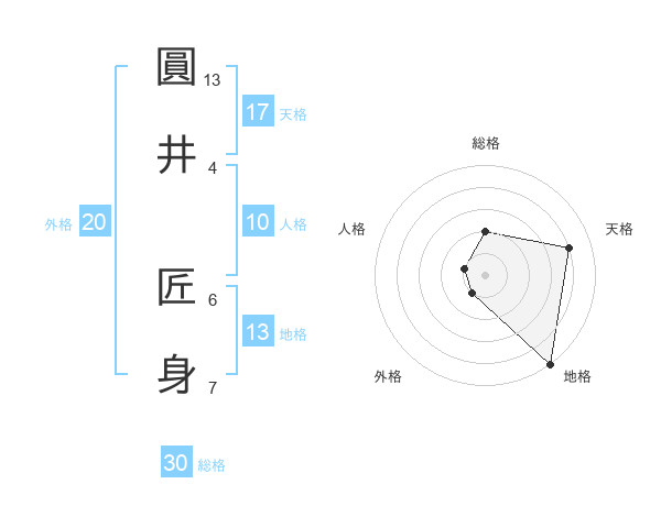 圓井 匠身さんの天格は17画の4点!