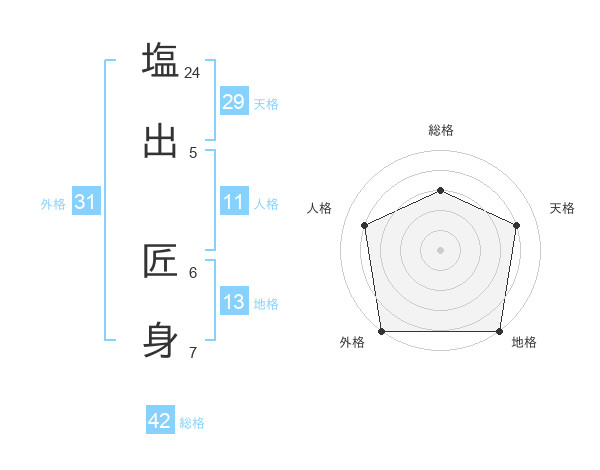 塩出 匠身さんを姓名の画数から五運を鑑定