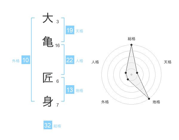 大亀 匠身さんの総格は32画の5点!