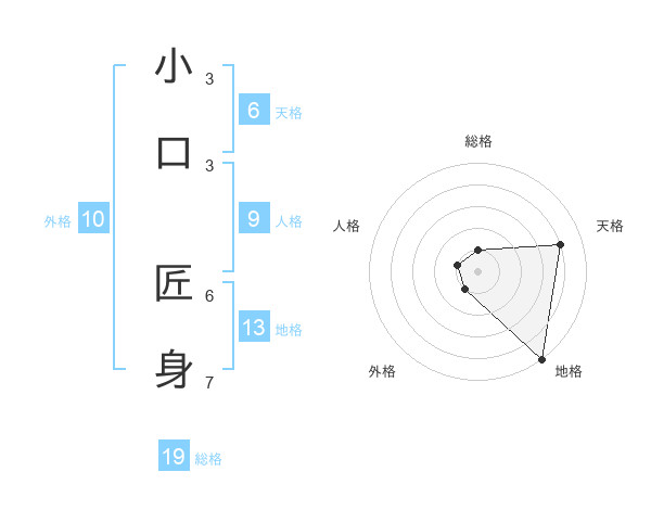 小口 匠身さんの地格は13画の5点!