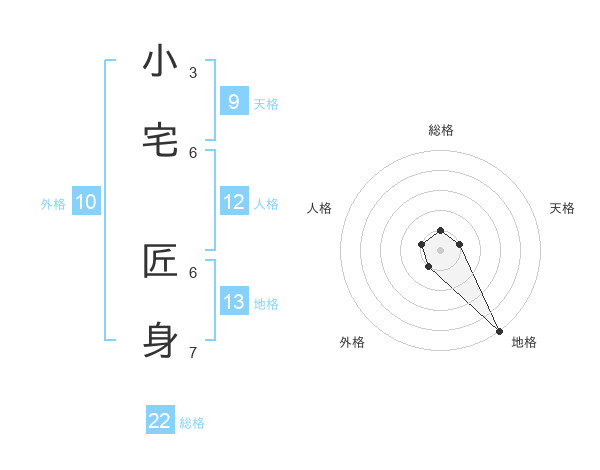 小宅 匠身さんを姓名の画数から五運を鑑定