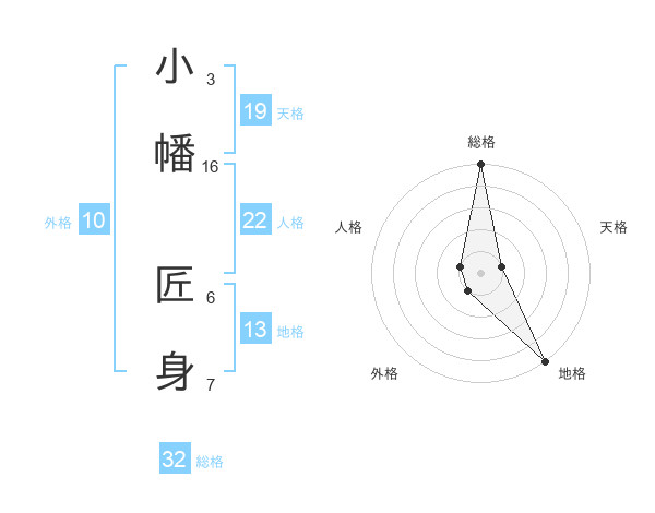 小幡 匠身さんを姓名の画数から五運を鑑定