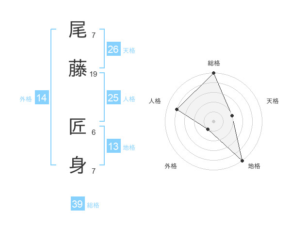 尾藤 匠身さんを姓名の画数から五運を鑑定