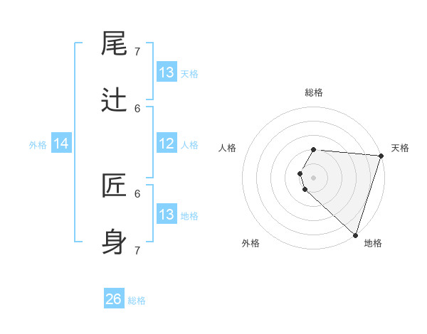 尾辻 匠身さんを姓名の画数から五運を鑑定