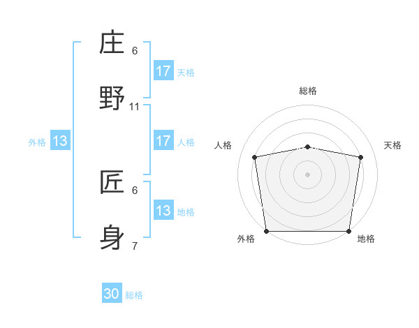 庄野 匠身さんの外格は13画の5点!