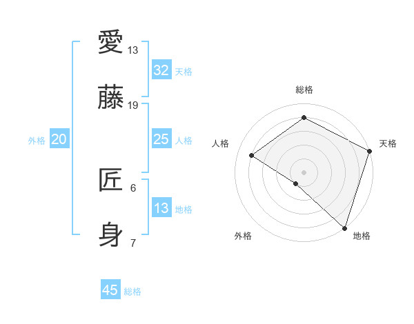愛藤 匠身さんを姓名の画数から五運を鑑定