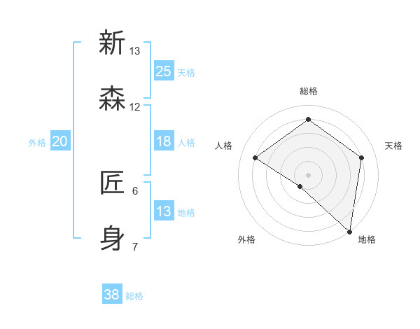新森 匠身さんの総格は38画の4点!
