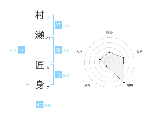 村瀬 匠身さんを姓名の画数から五運を鑑定