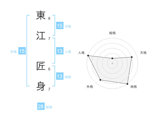 東江 匠身さんの地格は13画の5点!