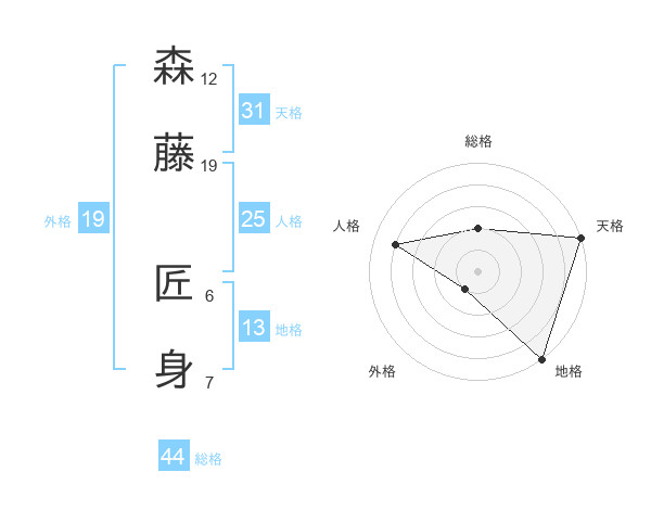 森藤 匠身さんを姓名の画数から五運を鑑定