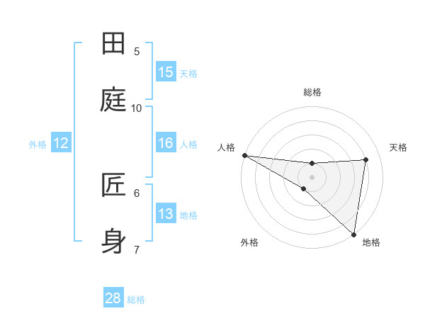 田庭 匠身さんを姓名の画数から五運を鑑定
