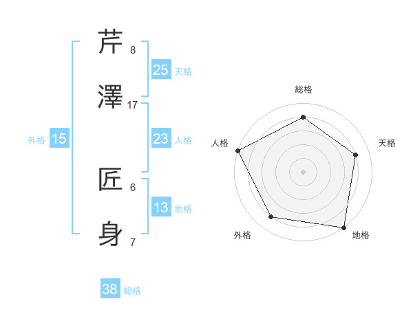 芹澤 匠身さんを姓名の画数から五運を鑑定