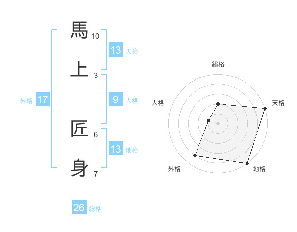 馬上 匠身さんを姓名の画数から五運を鑑定