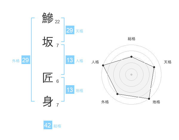 鰺坂 匠身さんの天格は29画の4点!