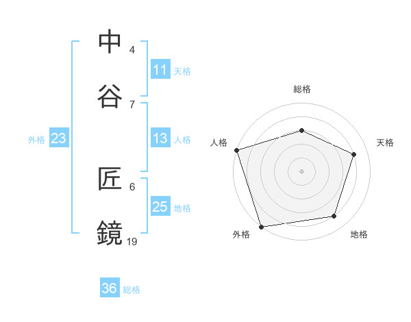 中谷 匠鏡さんを姓名の画数から五運を鑑定