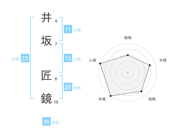 井坂 匠鏡さんの外格は23画の5点!