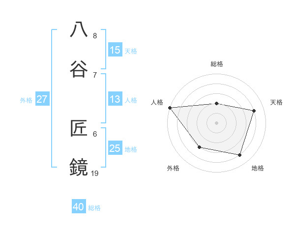 八谷 匠鏡さんの総格は40画の2点!