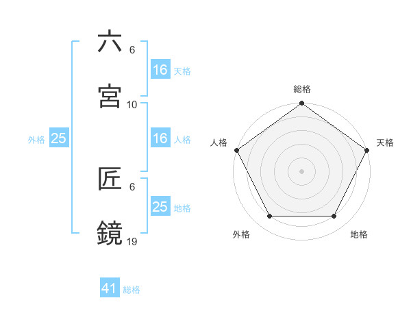 六宮 匠鏡さんを姓名の画数から五運を鑑定