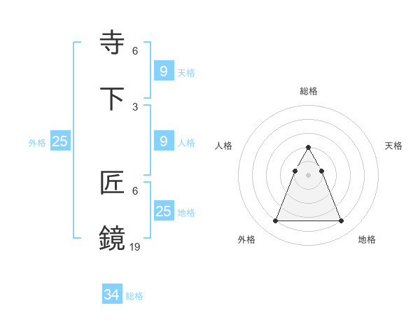 寺下 匠鏡さんの総格は34画の2点!