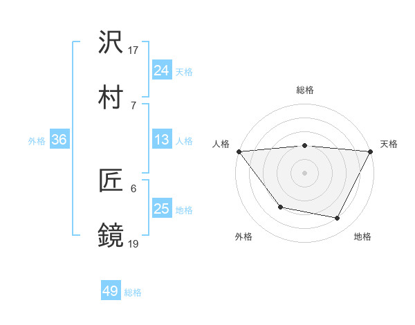 沢村 匠鏡さんを姓名の画数から五運を鑑定