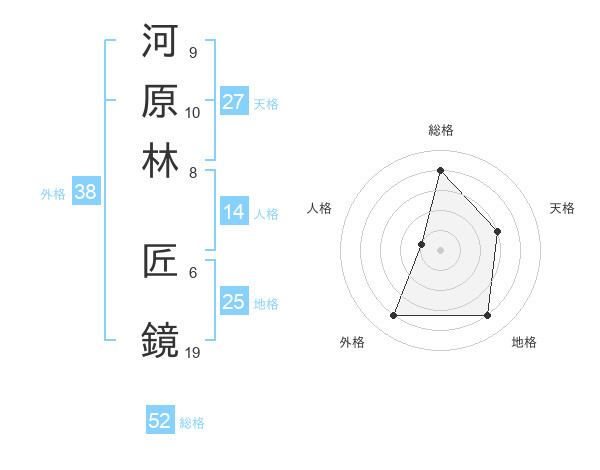 河原林 匠鏡さんの総格は52画の4点!