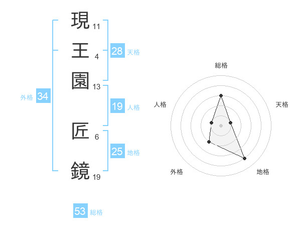 現王園 匠鏡さんを姓名の画数から五運を鑑定