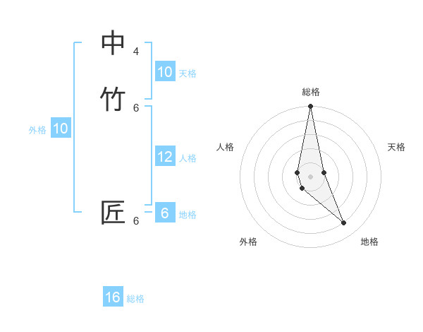 中竹 匠さんの総格は16画の5点!