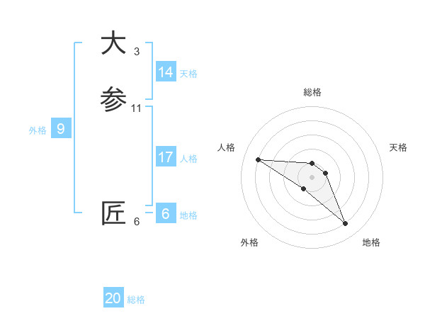 大参 匠さんの総格は20画の1点!