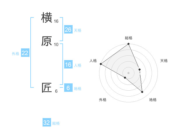 横原 匠さんの総格は32画の5点!