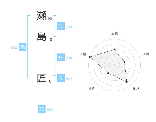 瀬島 匠さんを姓名の画数から五運を鑑定