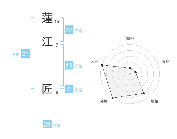 蓮江 匠さんの外格は21画の5点!