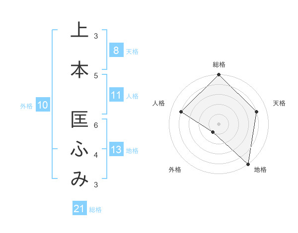 上本 匡ふみさんの地格は13画の5点!