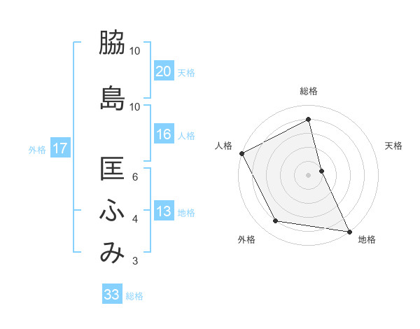 脇島 匡ふみさんの地格は13画の5点!