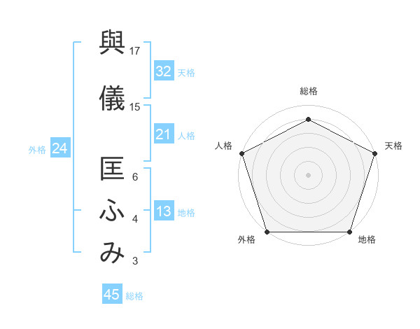 與儀 匡ふみさんの地格は13画の5点!