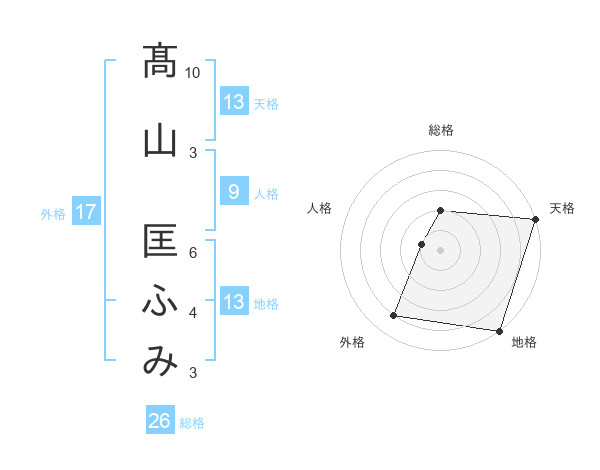 髙山 匡ふみさんを姓名の画数から五運を鑑定
