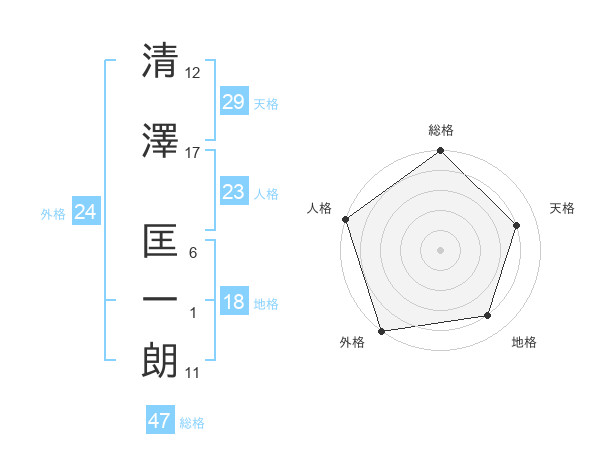 清澤 匡一朗さんの総格は47画の5点!