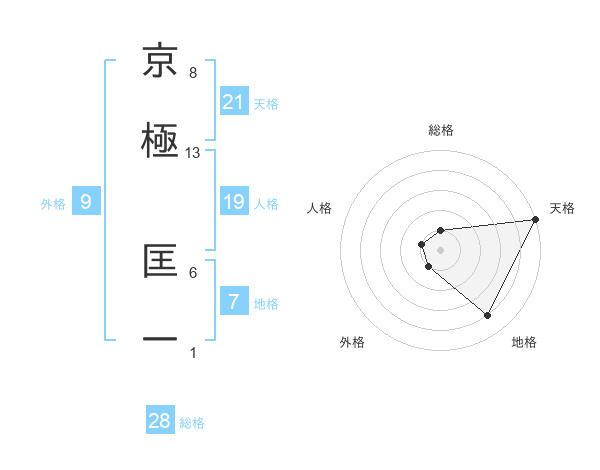 京極 匡一さんの天格は21画の5点!