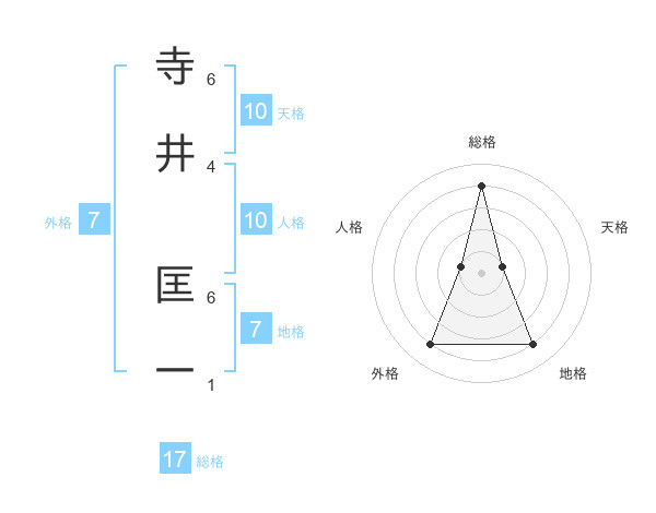 寺井 匡一さんの総格は17画の4点!