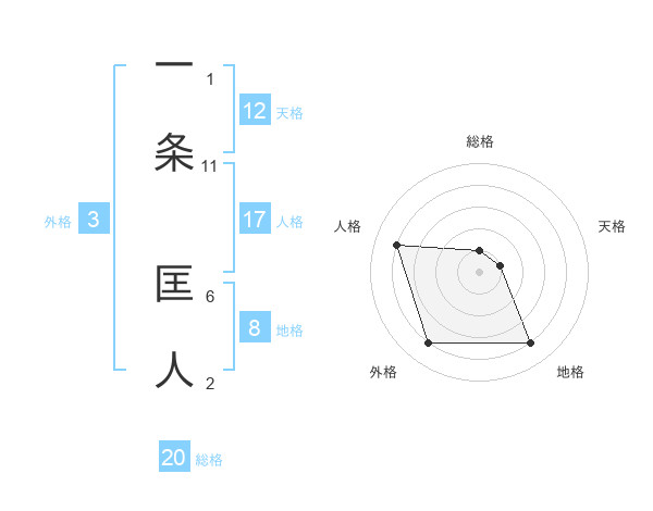 一条 匡人さんの天格は12画の1点!