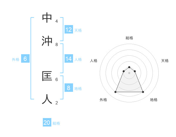 中沖 匡人さんを姓名の画数から五運を鑑定