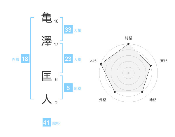 亀澤 匡人さんの総格は41画の5点!