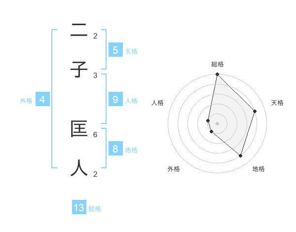 二子 匡人さんの総格は13画の5点!