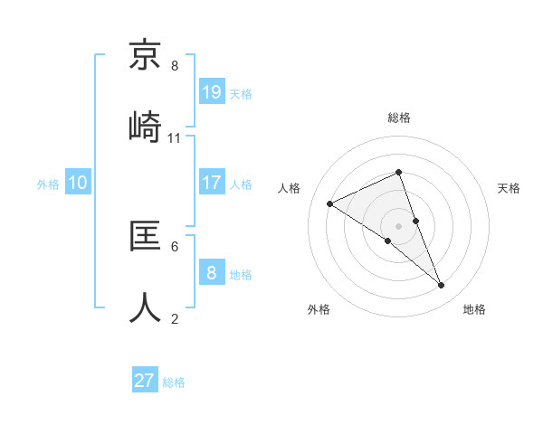 京崎 匡人さんの総格は27画の3点!