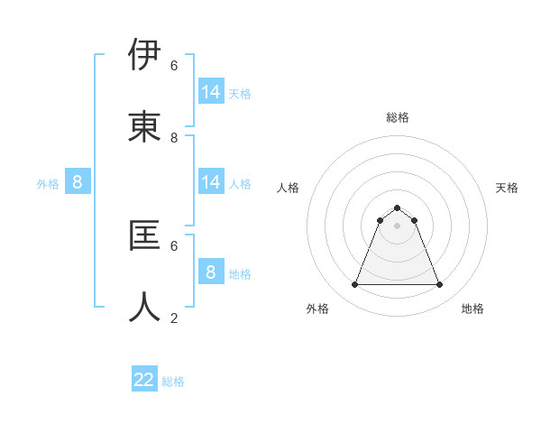 伊東 匡人さんの総格は22画の1点!
