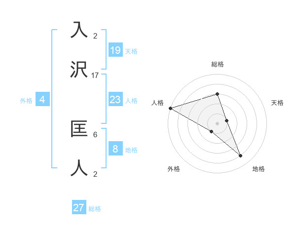 入沢 匡人さんの総格は27画の3点!