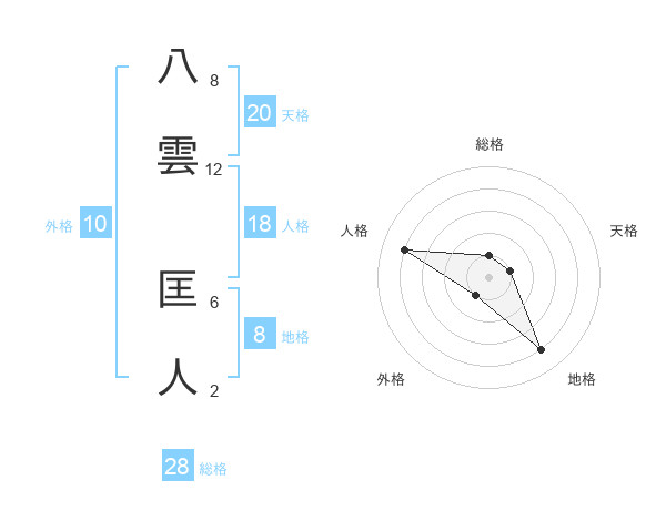 八雲 匡人さんの総格は28画の1点!