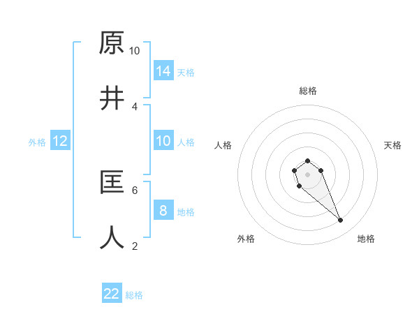 原井 匡人さんの総格は22画の1点!