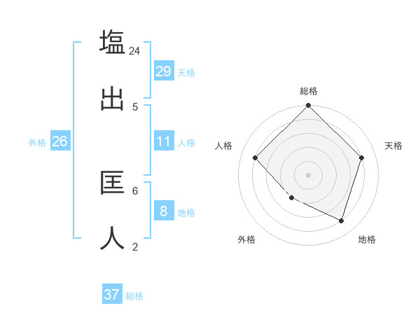 塩出 匡人さんの総格は37画の5点!